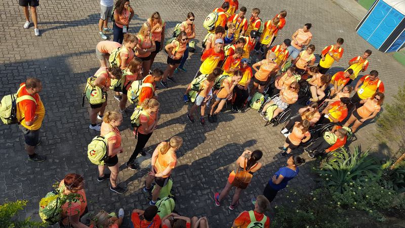 Heute war das Frühstück eine Stunde früher als sonst, denn heute stand wieder ein gewaltiges Programm auf dem Plan. Zuerst ging es zum Rollstuhlbasketball und anschließend zum Aquapark um dort die Deutschen Schwimmerinnen und Schwimmer anzufeuern.