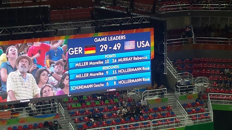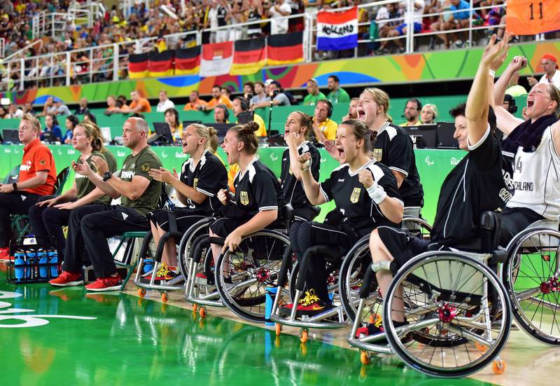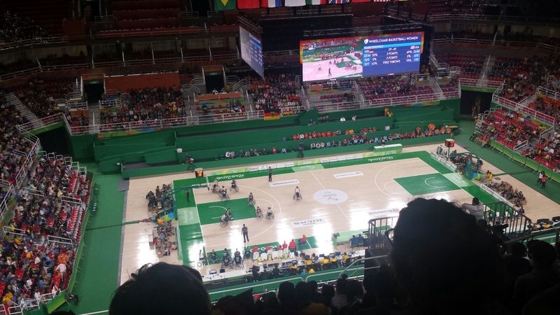 Im Anschluss ging es dann zum Rollstuhlbasketball, hier konnten wir sehen wie die Deutschen Frauen Frankreich in Grund und Boden spielten und am Ende das Viertelfinale deutlich mit 76:28 für sich entschieden. Die Stimmung war einfach super.