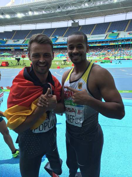 In der Schadenklasse T42 (Amputation ohne eigenes Knie), also so wie ich, startete mein Freund Heinrich Popow und Leon Schäfer. Heinrich sprang 6,70 m und sicherte sich damit die Goldmedaille und verfehlte seinen eigenen aufgestellten Weltrekord nur um 7 cm. Leon Schäfer erreichte den 4. Platz mit einer Weite von 6,06 m. Jungs ich freu mich für Euch und bin froh mit euch befreundet zu sein. Auch die beiden werde ich in Duderstadt beim Talentcamp in Oktober treffen. Da gibt es bestimmt richtig viel zu hören von den Beiden.