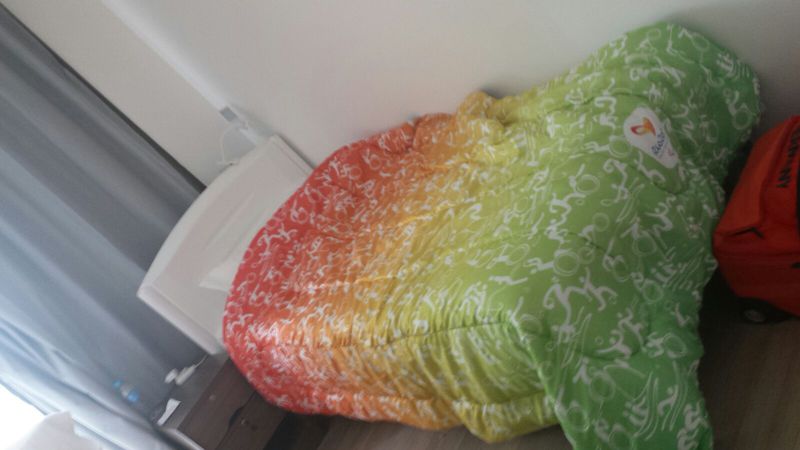Auch den Blick in ein Zimmer im Athletischen Dorf durften wir werfen. Die Zimmer sehen fast so wie die in unserer Unterkunft. Jedoch seht ihr, die haben Bettzeug mit Rio 2016. Wie genial ist das. Da träumt man bestimmt gut.